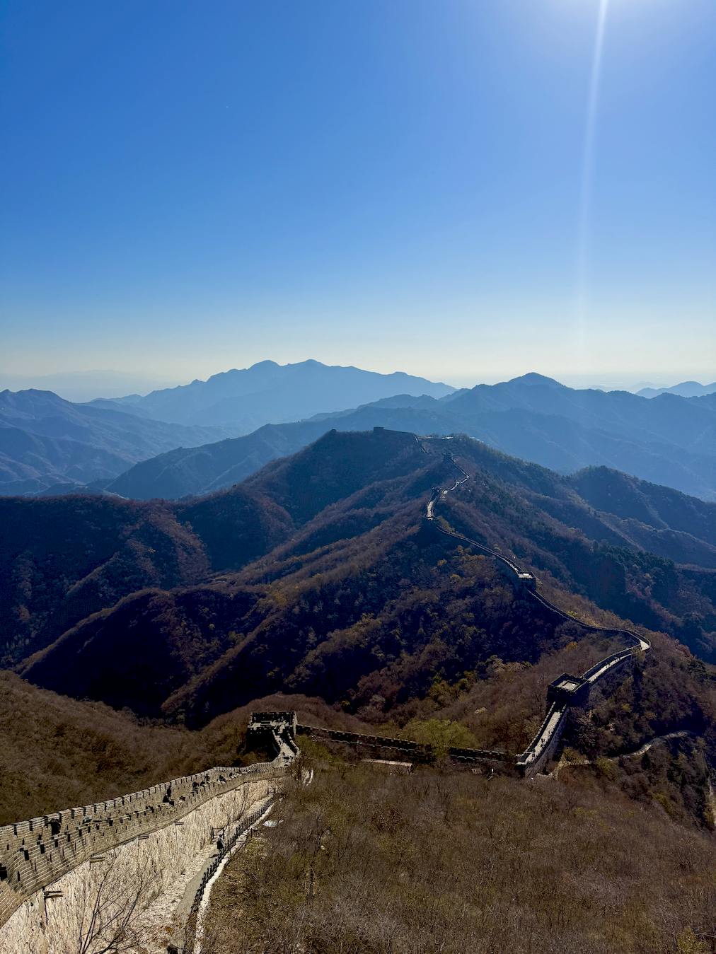 The Hilton arranged a car for us to and from the Great Wall at Mutianyu, which was convenient and safe. Construction on the Great Wall of China began around 770 BCE as small defensive sections of wall to protect against northern invasions. In around 475-221 BCE, the sections of the Wall began to take shape as one long structure. It was used for border control, trade regulation, protection along the Silk Road, and transportation. It is somewhere around 13,000 miles long, and 16-26’ tall. For 3000 years it has been a symbol of Chinese strength and perseverance. We took the cable car to tower 14, then hiked as far as we could go to tower 20. The route was very steep and hilly over uneven cobblestones and up treacherous staircases, but the view from the top was astonishing! We got lucky with a clear, sunny day so we could see the wall stretching out for miles along the spine of the mountains. Being there was surreal and totally worth it!