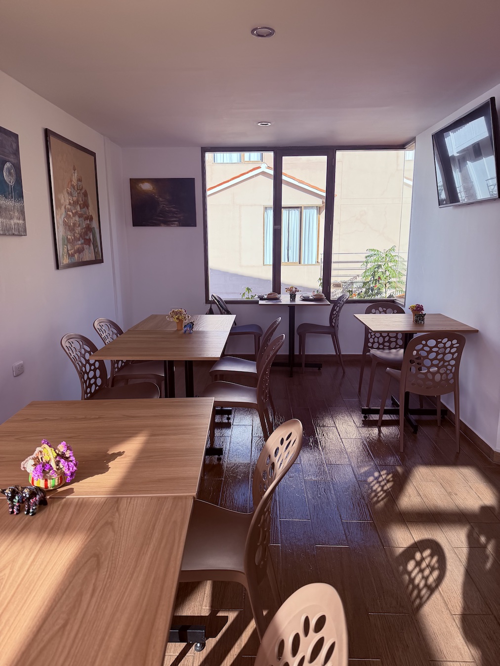 Muju is centrally located to the main center of Urumbamba. The Temple of San Pedro stands sentinel at the head of the nearby Spanish style plaza, which is lined with shops. The local market sells everything from fruit to maras salt and meat to souvenirs. There are several lovely restaurants such as Pakakuna Resturante right near the Plaza as well. The town of Urubamba is a real, authentic Peruvian experience- although they do cater to tourists to a degree, the people out and about are mostly locals and families enjoying their lives.