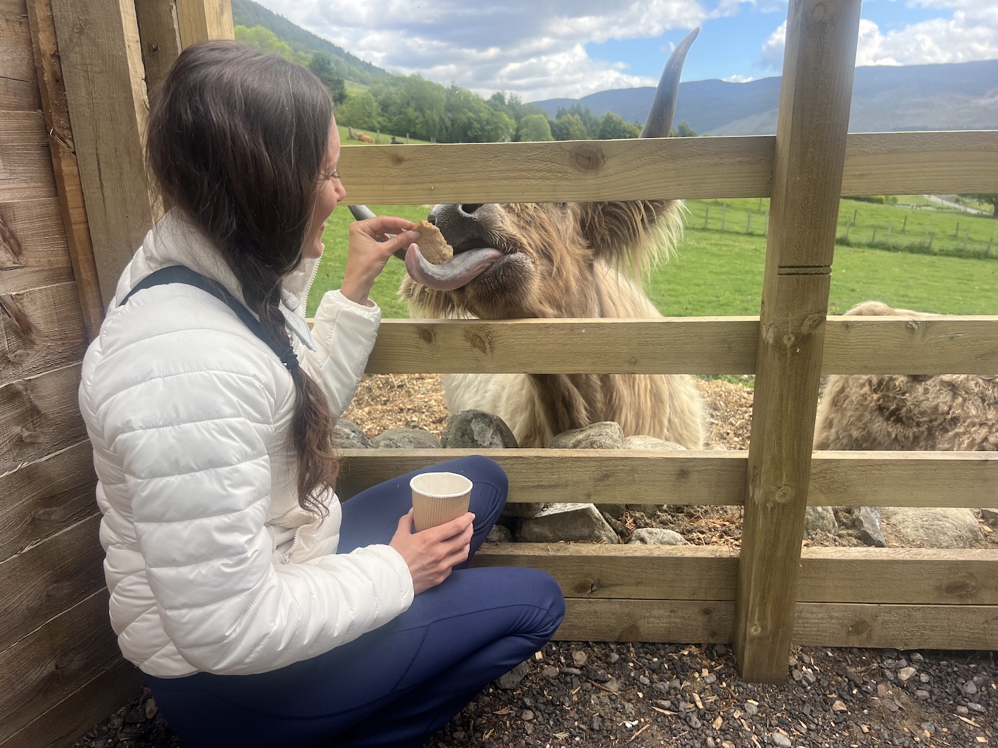 Make reservations in advance so you can have tea with Highland cows at Quila Cridhe Tea Room. Highland cows are irresistibly cute and have an excellent temperament, making them perfect guests for tea. The establishment is adorable, the set menu is delicious, and you get to spend as much time as you want admiring the fluffy coo’s.